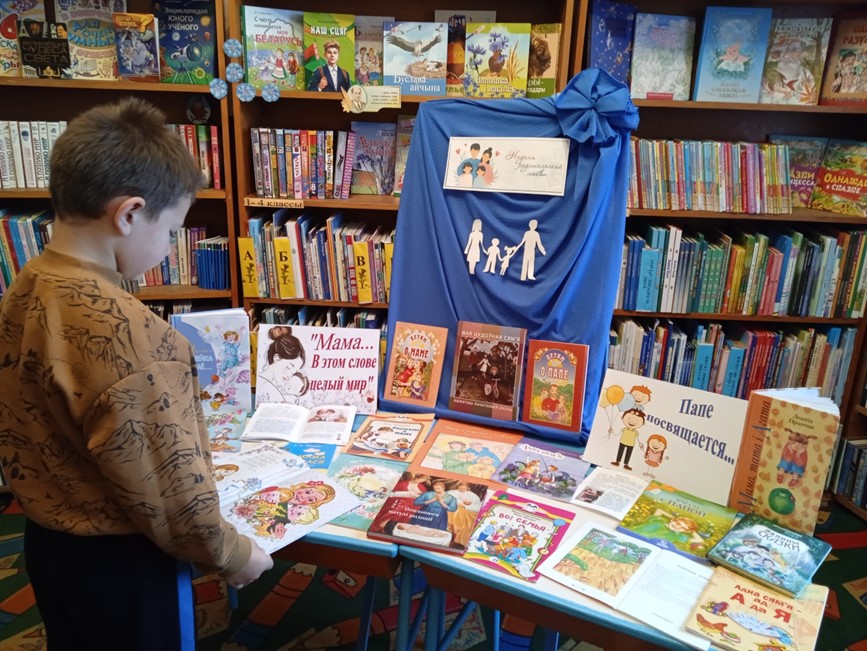 В библиотеке для юных пользователей оформлены книжные выставки «Мама – это целый мир!», «Папе посвящается…», на которых представлены интересные детские книги, раскрывающие образ матери и отца.