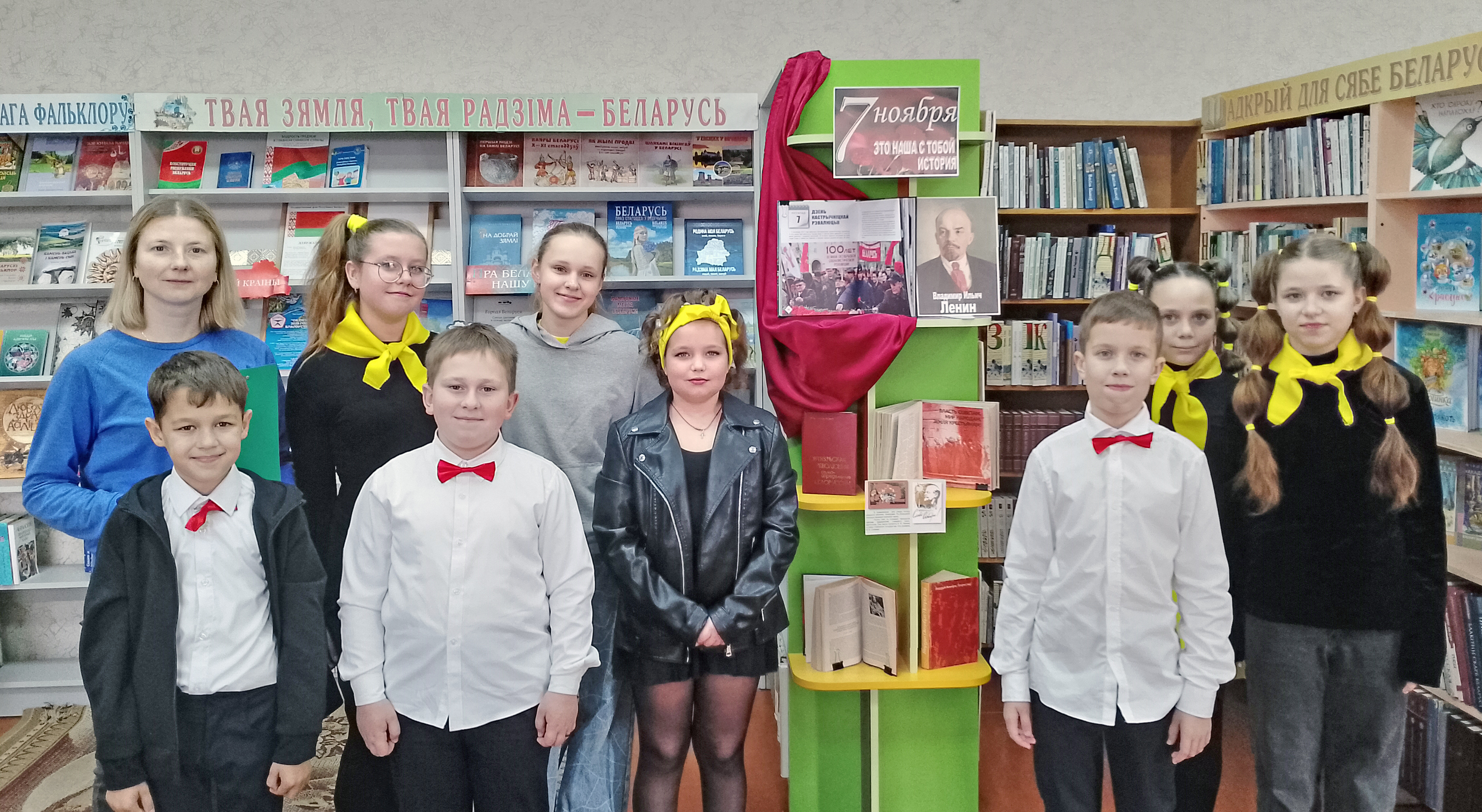 В преддверии Октябрьской революции в детско-юношеском отделе центральной библиотеки прошел познавательный час «Дорогами революции». Библиотекарь рассказала ребятам о истории главного праздника СССР, о событиях 7 ноября 1917 года. Дети узнали, кто такой Ленин и какую роль он сыграл в революции. Кроме того, в рамках мероприятия сотрудниками библиотеки была организована тематическая выставка «Октябрь 1917 года в истории нашей страны». |