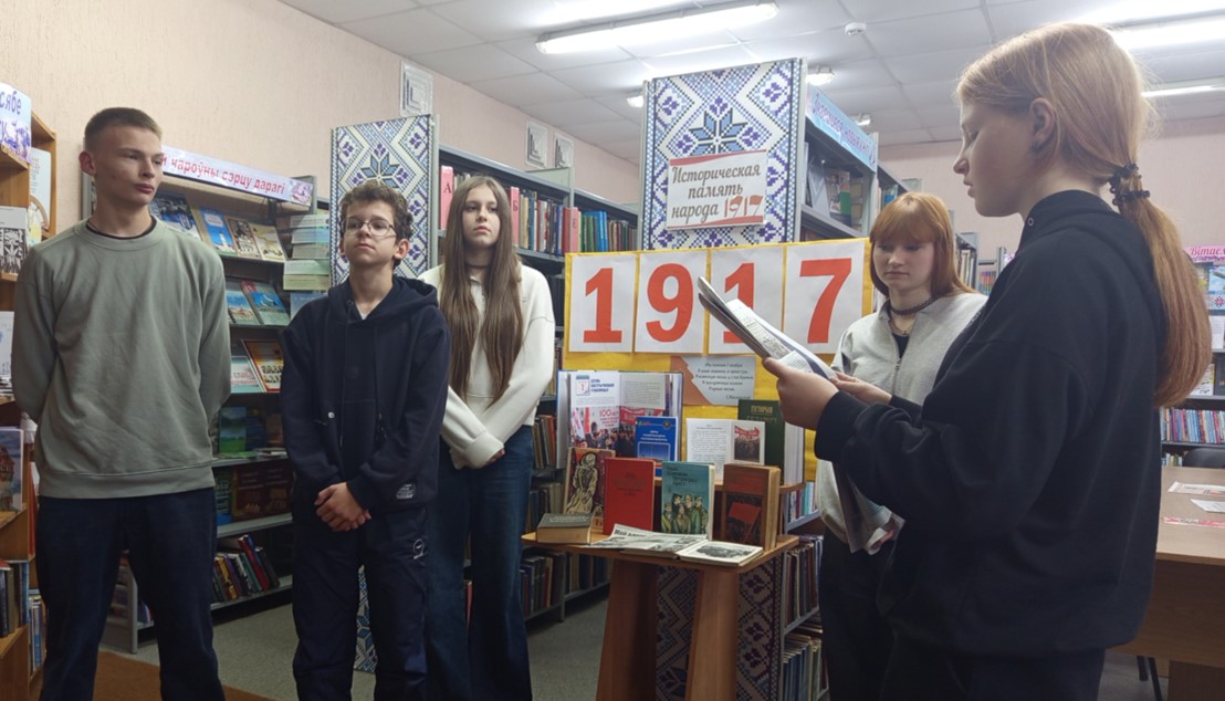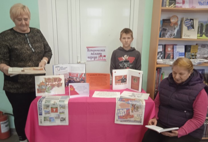 Завершилось мероприятие библиографическим обзором тематической выставки «Историческая память народа», на которой была представлена документальная и художественная литература, посвященная событиям Октябрьской революции. |