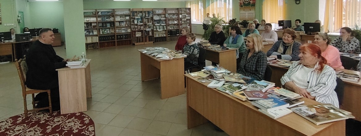 В рамках Недели родительской любви в Шкловской центральной районной библиотеке состоялся круглый стол «Семья - всему начало» с участием священника Спасо-Преображенского храма г. Шклова иерея Димитрия. Встреча прошла в форме живого диалога, обсуждения того, как построить семейное счастье, воспитать детей достойными людьми, соблюдая заповеди Божии. Разговор шел о семье, важности соблюдения добрых традиций, объединяющих родных и близких, о таких семейных понятиях, как уважение, спокойствие и благополучие.