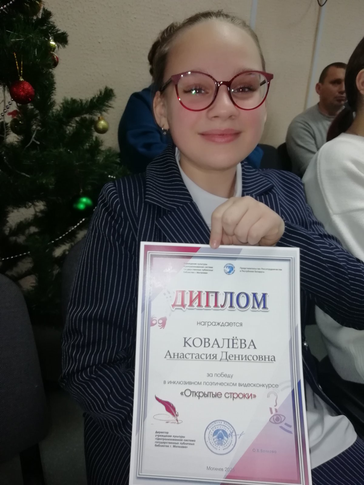 Победителями инклюзивного поэтического видеоконкурса «Открытые строки», который проводился в рамках Года благоустройства в Республике Беларусь и Года защитника Отечества в Российской Федерации, стали читатели детско-юношеского отдела Шкловской центральной библиотеки – Ковалева Анастасия и Галимский Дмитрий. |