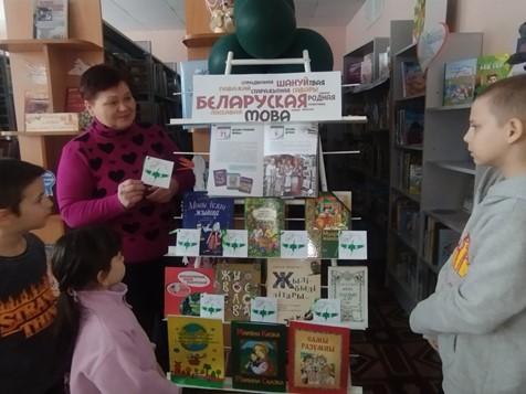 Напрыканцы мерапрыемства рабяты прынялі ўдзел у калектыўнай творчай рабоце «Мая Беларусь», дзе кожны напісаў на картках свае любімыя беларускія словы «Радзіма», «маці», «бацька», «сяброўства» і іншыя. Увазе чытачоў была прадэманстравана выстава «Беларуская родная, ласкавая мова». |