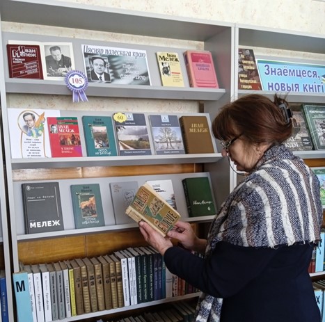 Наведвальнікі бібліятэкі пазнаёміліся з кніжнай выставай, на якой былі прадстаўлены кнігі пісьменніка і літаратура, якая распавядае пра жыццё і творчаць Івана Мележа. |