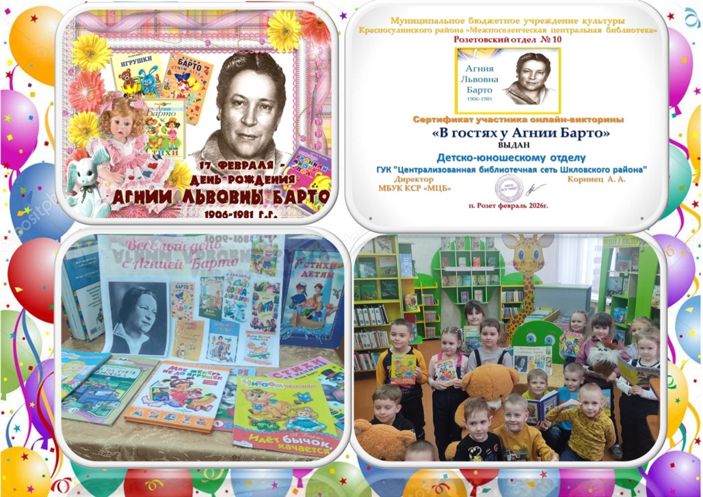 17 февраля - 120 лет со дня рождения Агнии Барто – поэтессы, чьи стихи стали неотъемлемой частью детства для многих поколений. В этой связи в Окуневской библиотеке проведена викторина «Угадай–ка, что за стих?». Ребята ознакомились с жизнью и творчеством Агнии Барто.