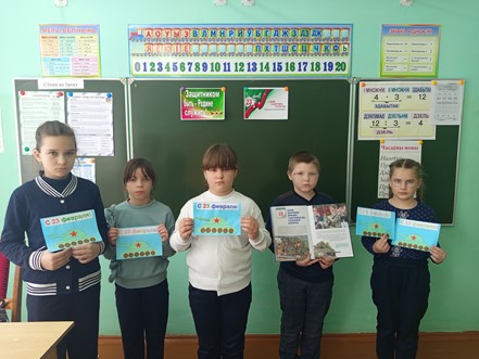 В преддверии праздника Дня защитников Отечества и Вооруженных сил Республики Беларусь в Старосельской библиотеке для учащихся 3-го класса прошел мастер-класс «На листке календаря 23 февраля». В самом начале мероприятия библиотекарь рассказала школьникам, почему именно 23 февраля мы поздравляем всех тех, кто охраняет покой нашей страны. Также ребятам было предложено поучаствовать в игре «Медпомощь», «Пароль», отгадать предметы военной тематики, вспомнить пословицы о Родине, о героях, отгадать загадки про папины профессии. Затем из цветной бумаги и картона дети смастерили для своих пап и дедушек поздравительные открытки, вписав в них пожелания мира и добра. |
