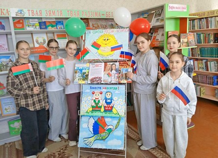 Ко Дню единения народов Беларуси и России в филиале «Александрийская сельская библиотека» прошел час истории «На пути единения». Библиотекарь рассказала ребятам об истории праздника, о подписании договора об образовании сообщества Беларуси и России, о том, что белорусско-российский диалог – это тесное взаимодействие двух стран во всех сферах сотрудничества.